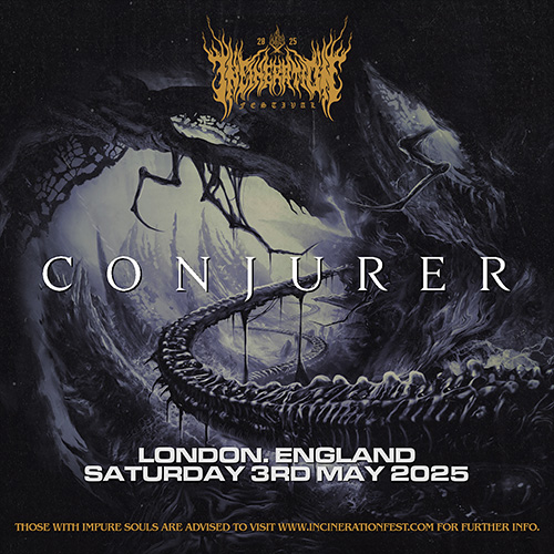 SUFFOCATE IN GLOOM. One of the wild burning flames of the British extreme metal scene - prepare to submerse yourselves as CONJURER take a mighty grip on all souls who enter the Electric Ballroom when they make a debut appearance at Incineration…